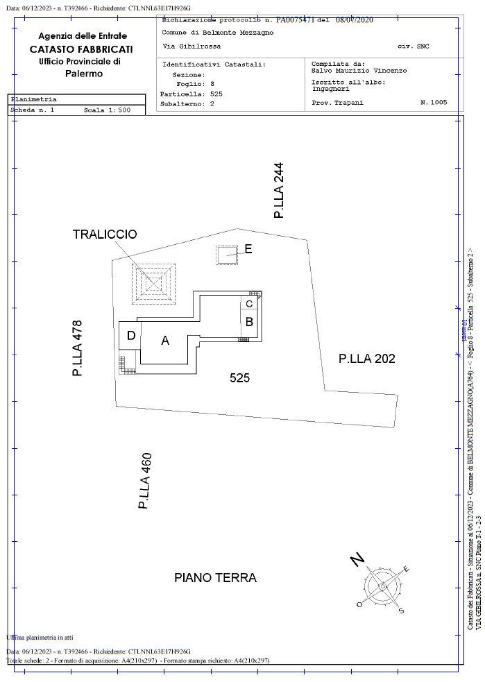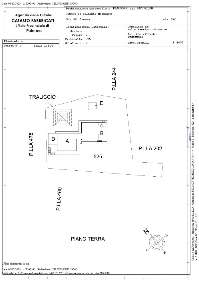 ◦ Fabbricato 2 (Part. 478): Sviluppato su tre livelli (Piani S1, Terra e 1°), censito in categoria catastale D/7.